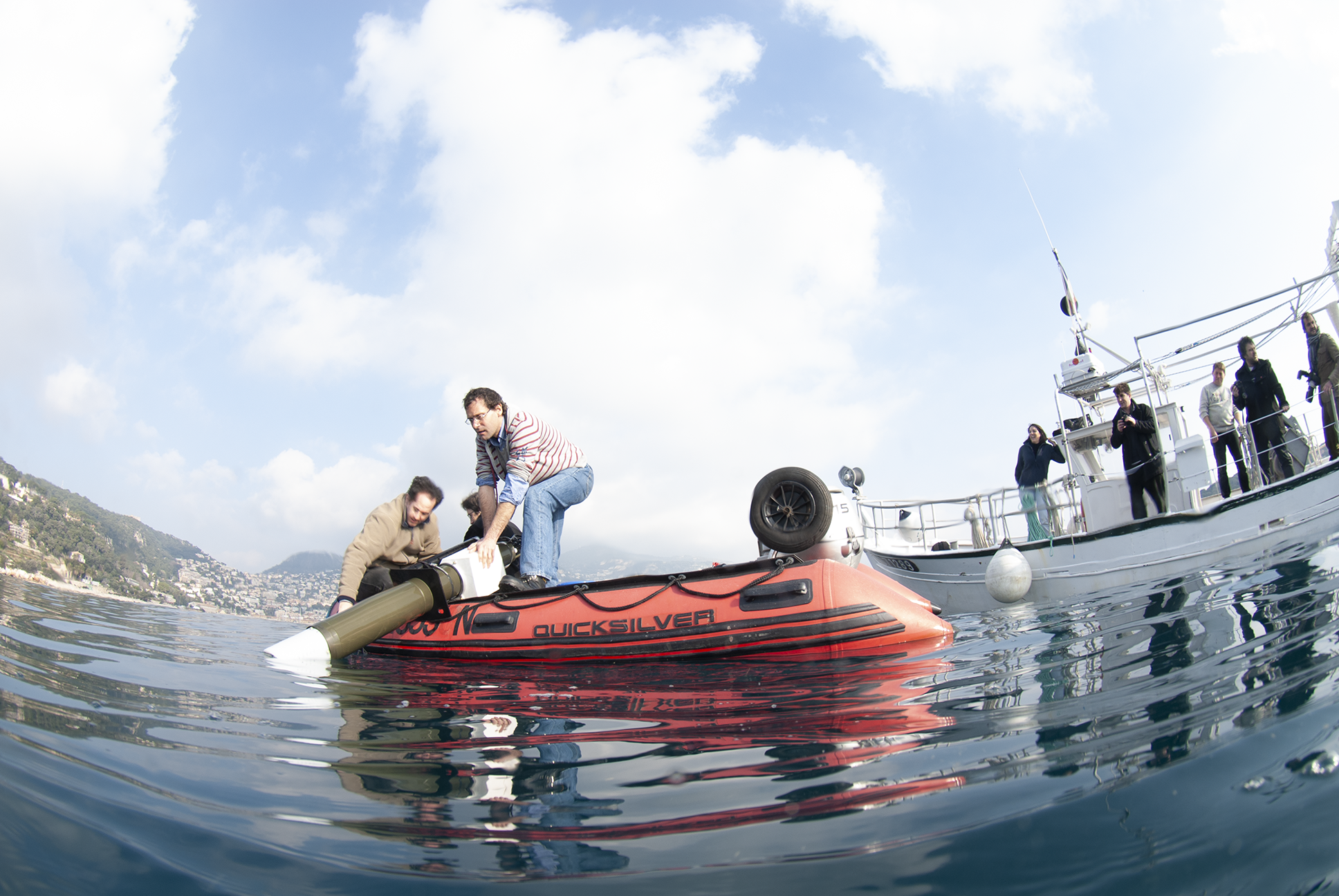 Test d'un flotteur dans la rade de Villefranche sur mer.