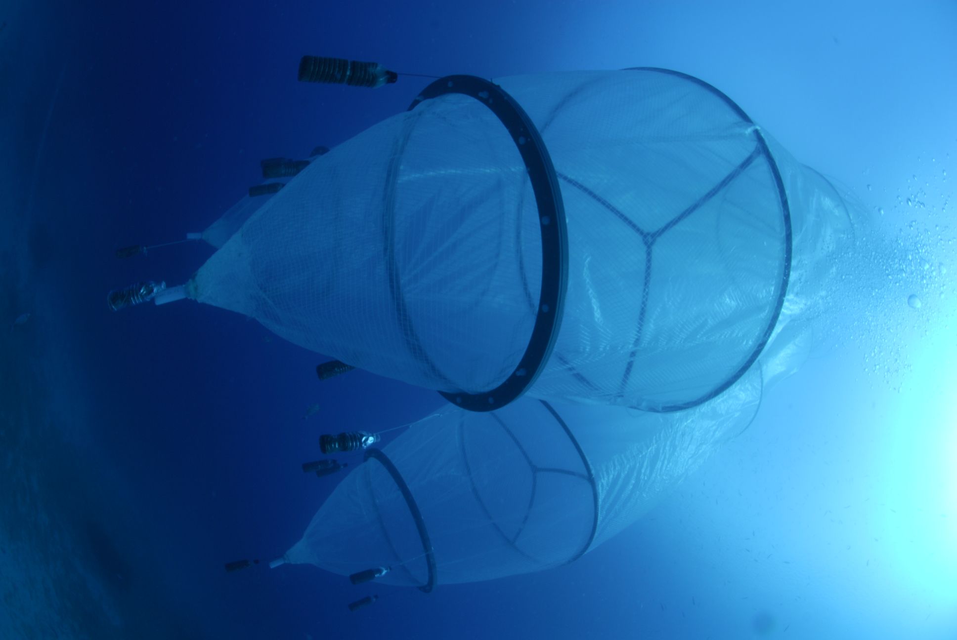 la baie d'Elbo, dans la réserve de Scandola en Corse. Quatre mésocosmes